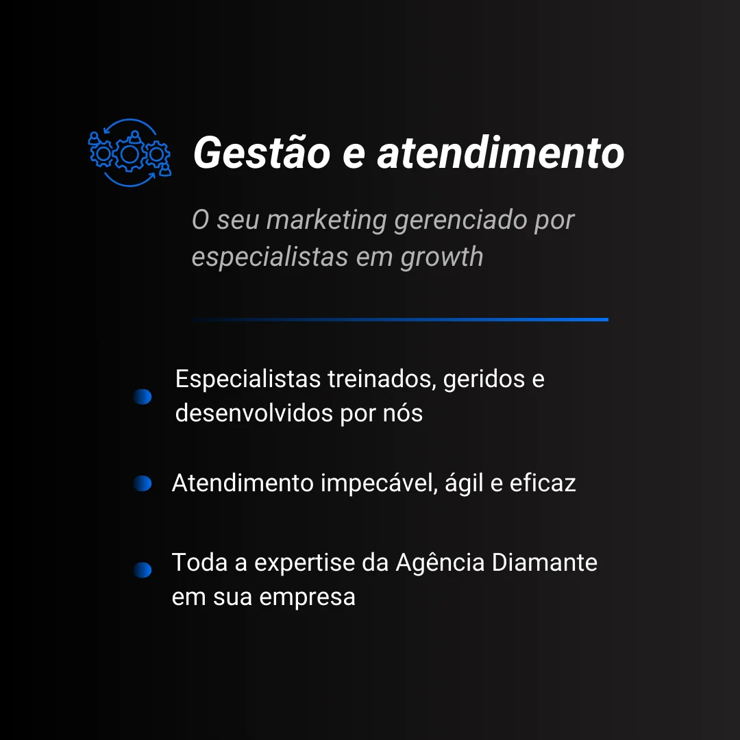 Tenha um braço a mais para ajudar seu time ou terceirize todo seu marketing com a Diamante, dessa forma você não se preocupa com contratação, gestão desse time, riscos trabalhistas e outras burocracias.