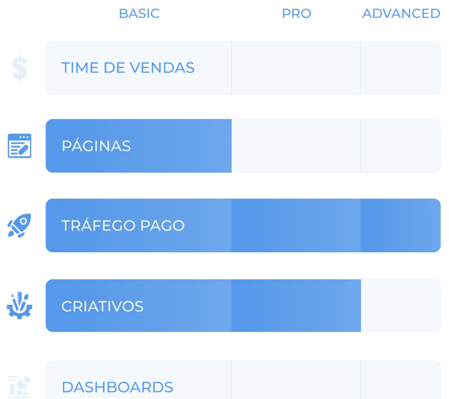 Todos esses serviços são divididos em planos. Você pode ajustar conforme sua disponibilidade de investimento.